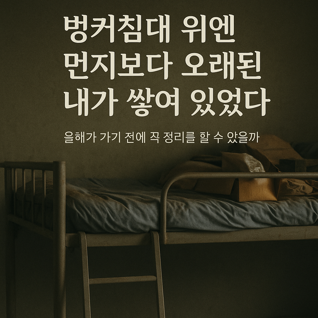 벙커침대는 더 이상 침대가 아니었다. 그건 구조물이었다. 과거의 계획과 현실 사이를 연결하는 다리, 혹은 그냥 그 사이에 낀 철제 잔해물.